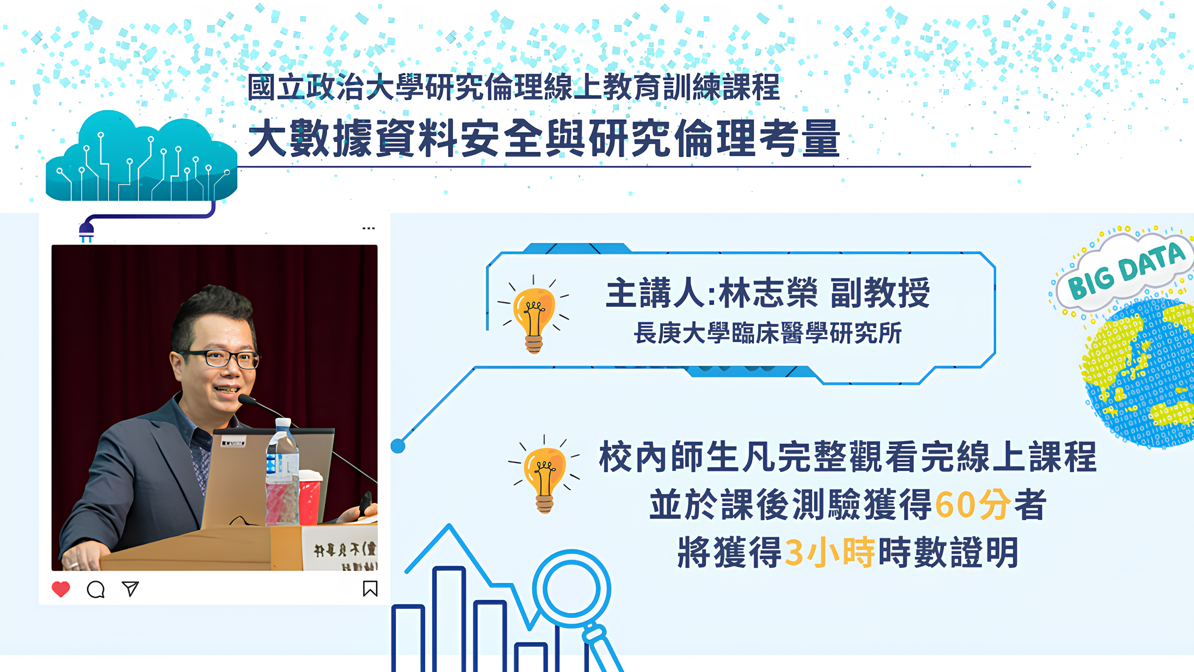 備註:本校師生完整觀看完線上課程並於課後測驗獲得60分者,將由辦公室核發3小時研究倫理教育訓練研習時數證明